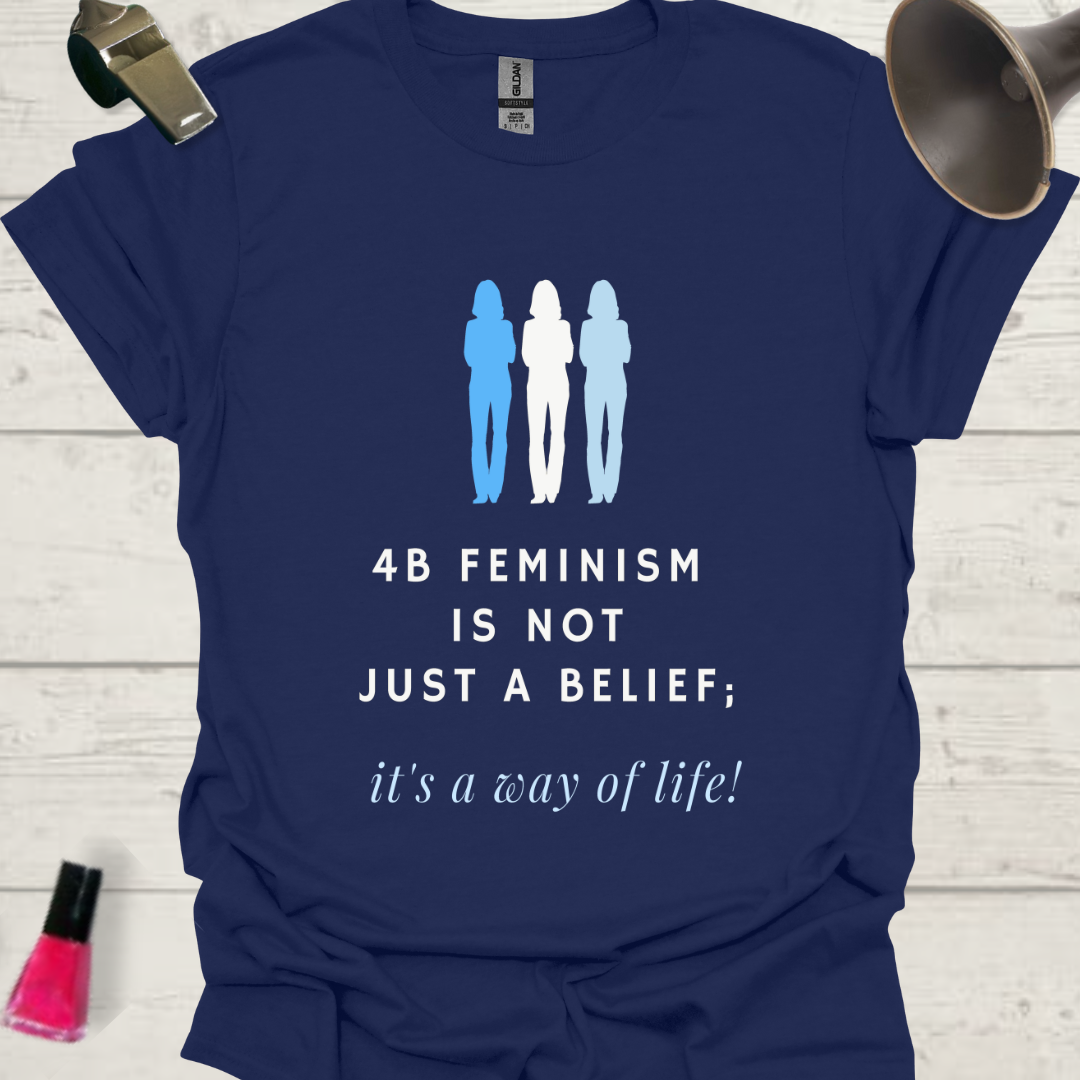 This T-shirt features 4B Feminism is not just a belief, it's a way of life! Women feminist design, giving off a strong and empowering vibe. Perfect for those who support feminist movements and want to make a statement. Ideal for casual wear, activism events, protests, Women's History Month, International Women's Day, and everyday empowerment.
