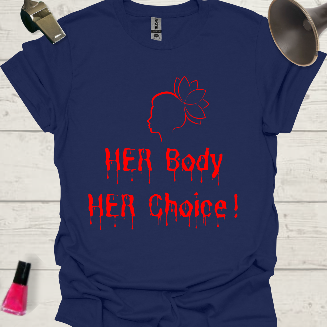 This T-Shirt features a Her Body Her Choice – written with her blood, Red Woman with a lotus Feminist Design, giving off a strong and empowering vibe. Perfect for those who support feminist movements and want to make a statement. Ideal for casual wear, activism events, protests, Women's History Month, International Women's Day, and everyday empowerment.
