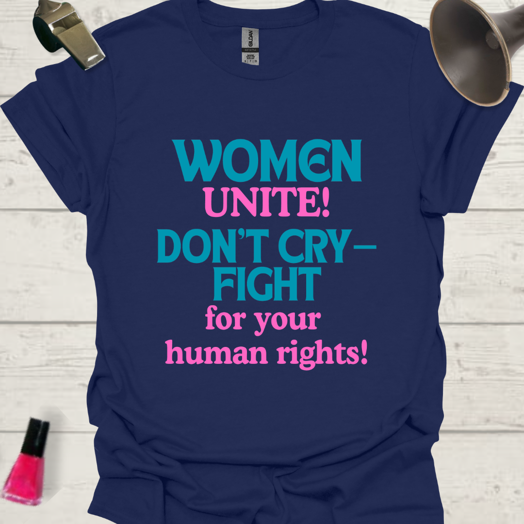 Feminist T-Shirt Women, Unite! Don't cry, fight for your human rights Design