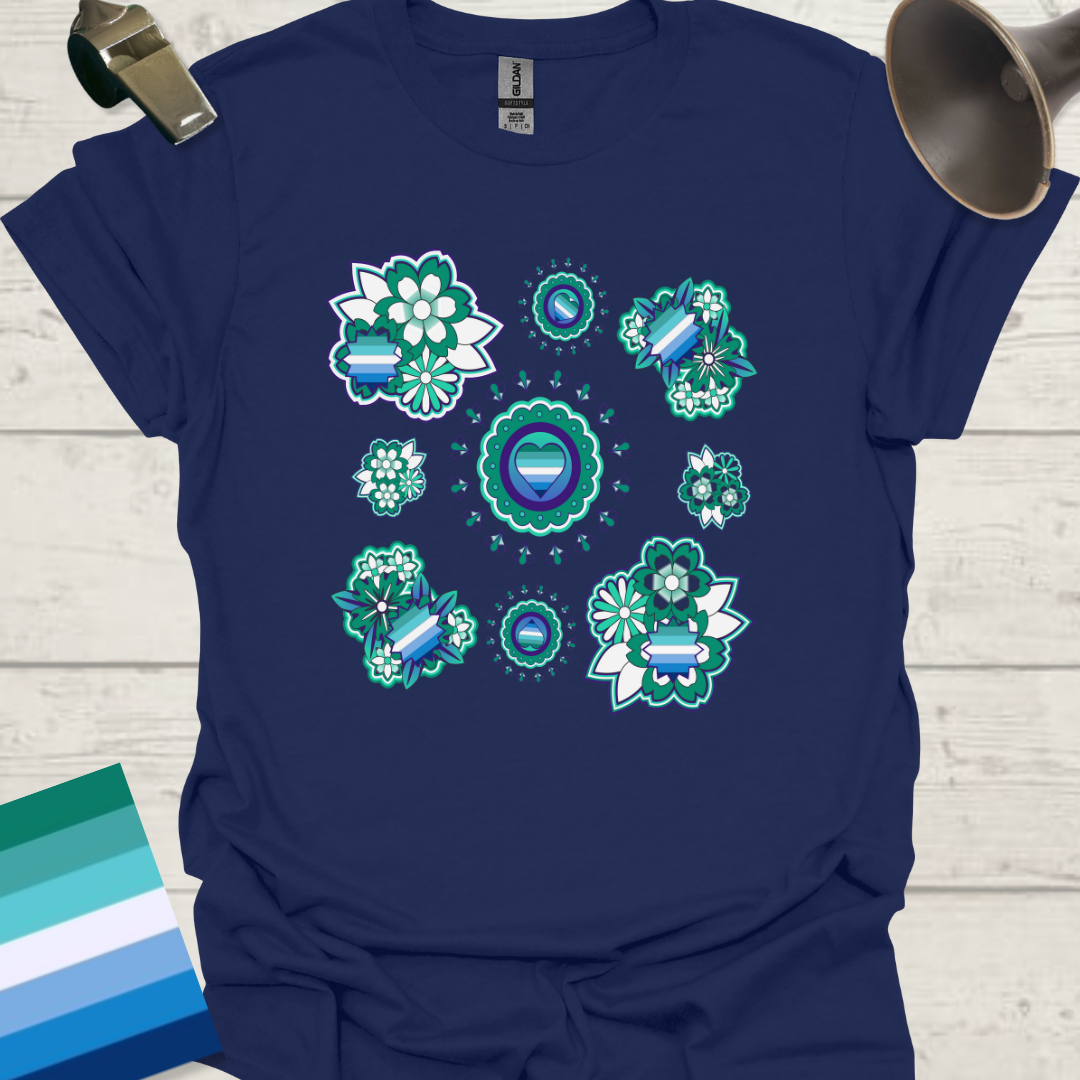 This T-Shirt featuring the Gay Man Pride flag colors and a floral pattern exudes a sense of pride and inclusivity. It is perfect for those who want to show support for the LGBTQ+ community and make a bold fashion statement. Ideal for Pride parades, LGBTQ+ events, casual outings, and everyday wear.