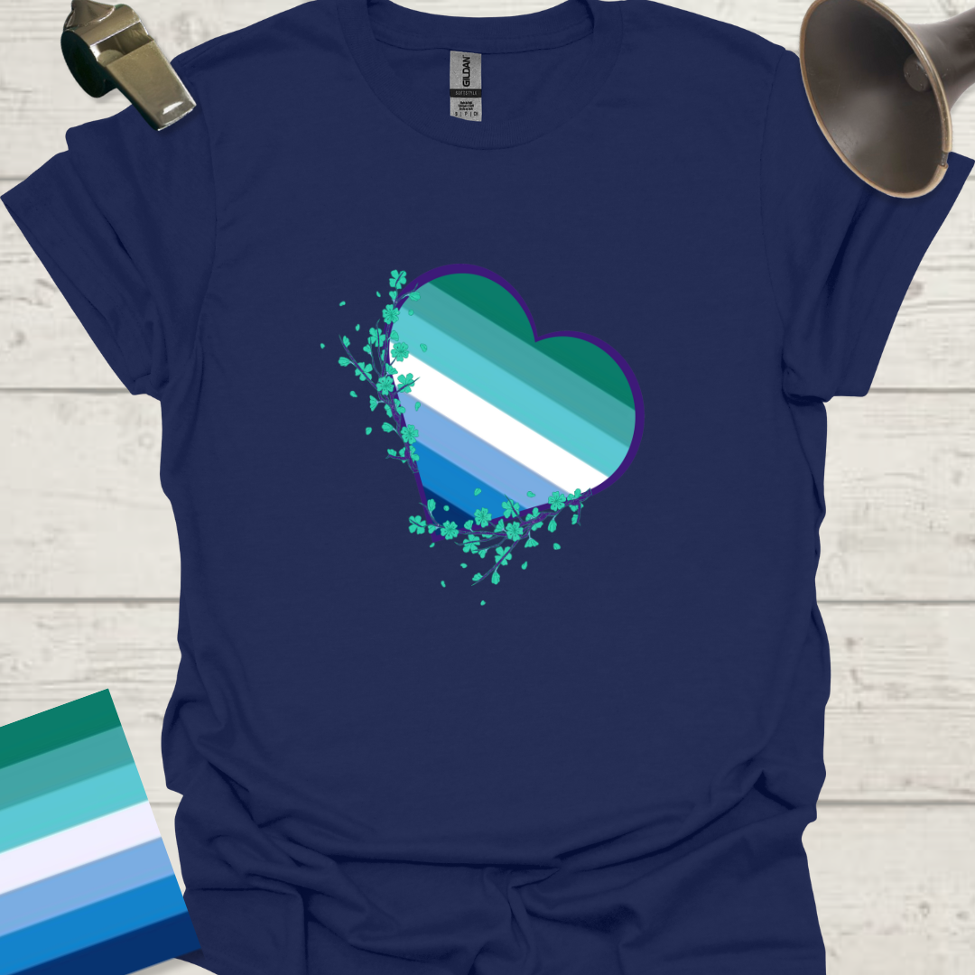 This T-Shirt featuring the Gay Man Pride flag colors and a floral design on a heart background exudes a sense of pride and inclusivity. It is perfect for those who want to show support for the LGBTQ+ community and make a bold fashion statement. Ideal for Pride parades, LGBTQ+ events, casual outings, and everyday wear.
