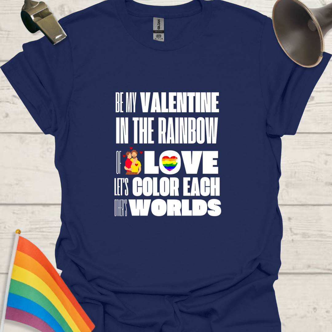 LGBT Love T-Shirt - Be My Valentine in the Rainbow of Love. Let's color each other's worlds, Gay