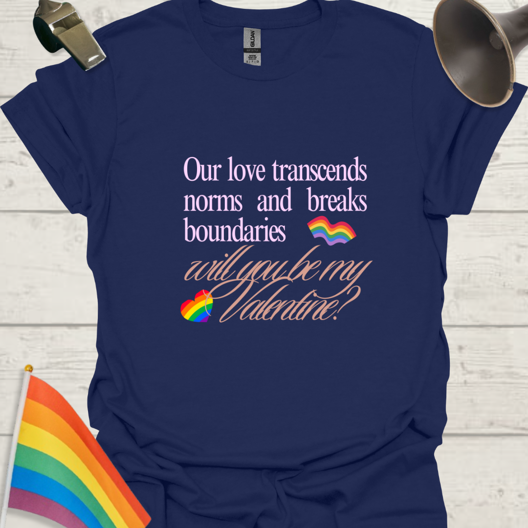 LGBT Love T-Shirt - Our love transcends norms and breaks boundaries. Will you be my Valentine?