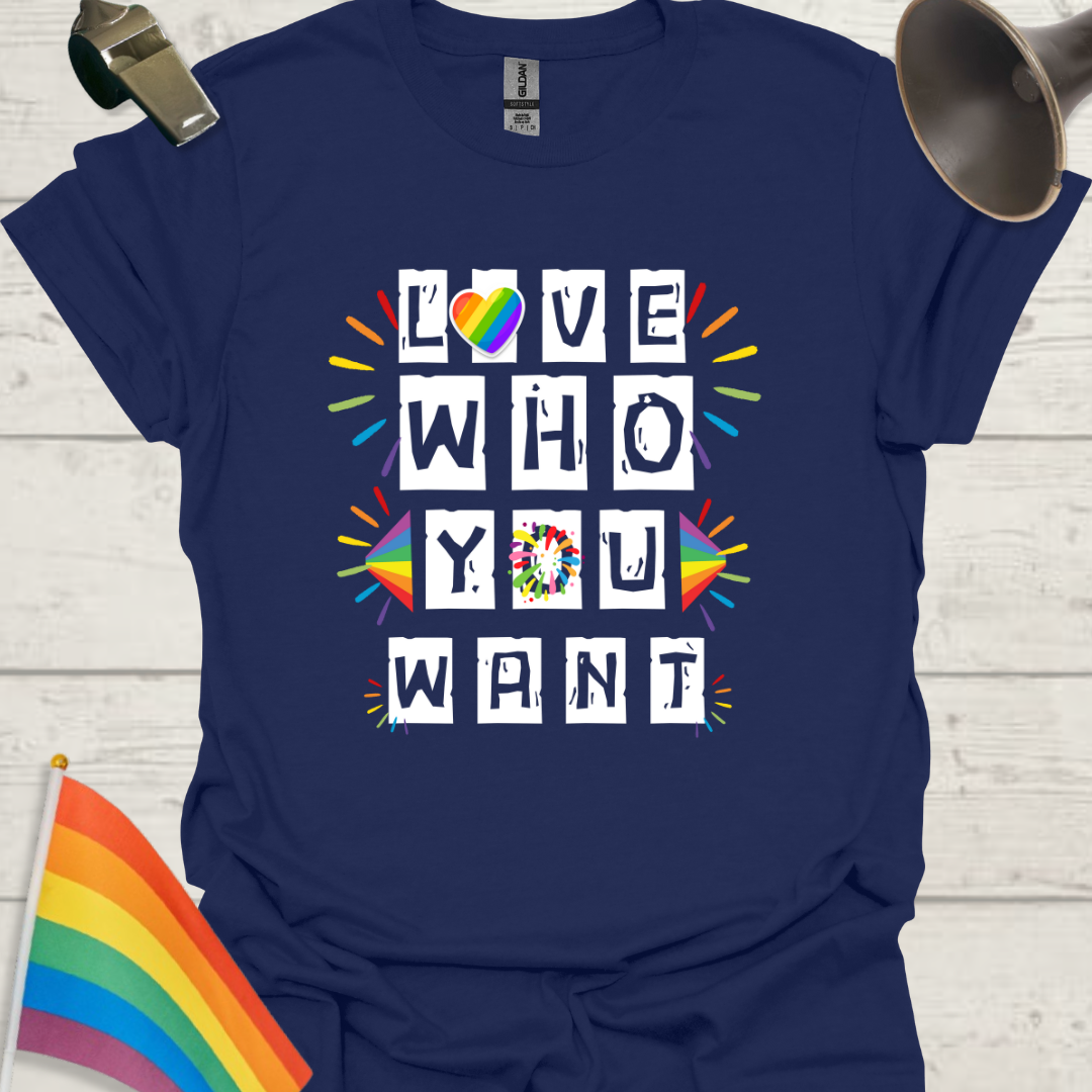 LGBT T-Shirt - Love Who You Want, Rainbow Heart