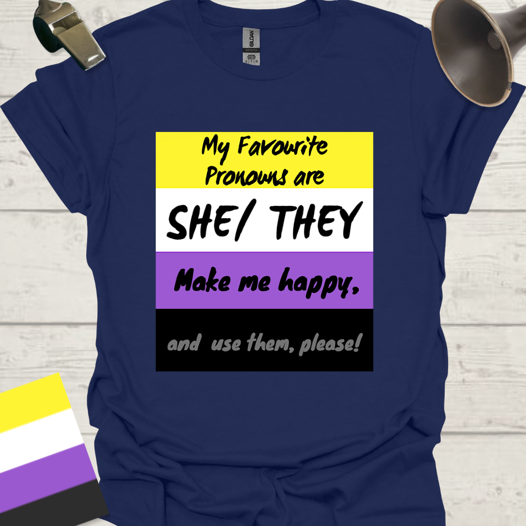 Non Binary My favourite pronouns are She They. Make me happy and use them please! Pride T-Shirt