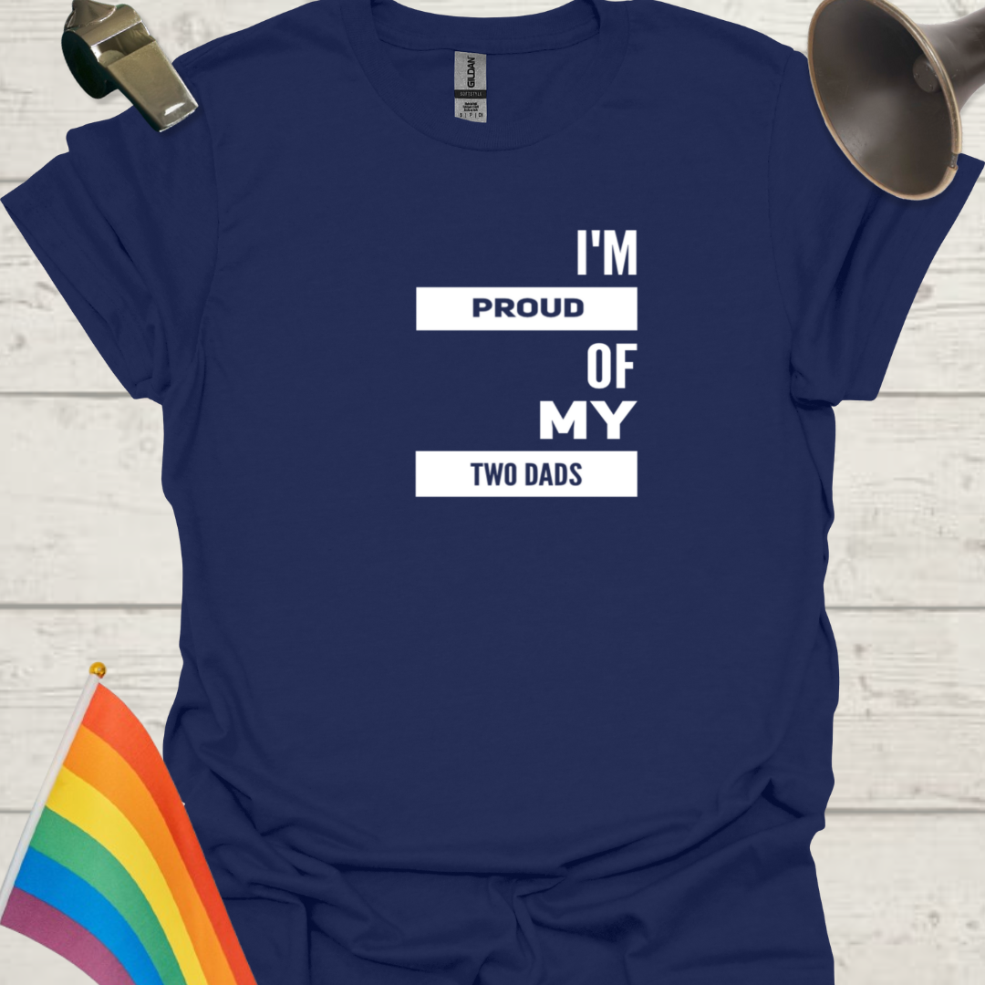 This unisex T-shirt features an 'I am proud of my two dads' LGBT design, making a bold statement of love and acceptance. The soft and durable fabric ensures comfort all year round, while the classic fit and crew neckline make it versatile for any occasion. Perfect for adults looking for a meaningful and stylish way to celebrate LGBTQ+ pride.