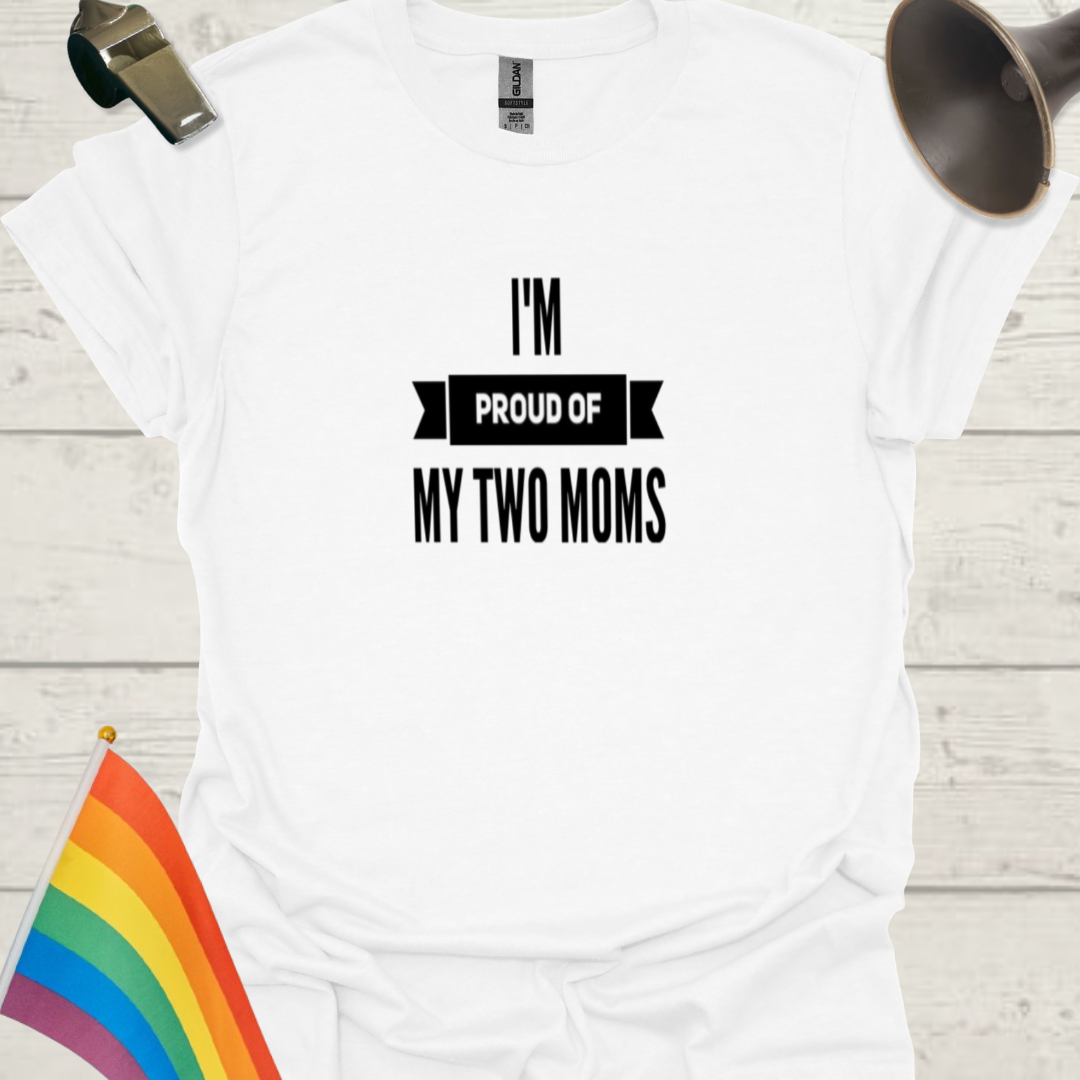 This unisex T-shirt features an 'I am proud of my two moms' LGBT design, making a bold statement of love and acceptance. The soft and durable fabric ensures comfort all year round, while the classic fit and crew neckline make it versatile for any occasion. Perfect for adults looking for a meaningful and stylish way to celebrate LGBTQ+ pride.