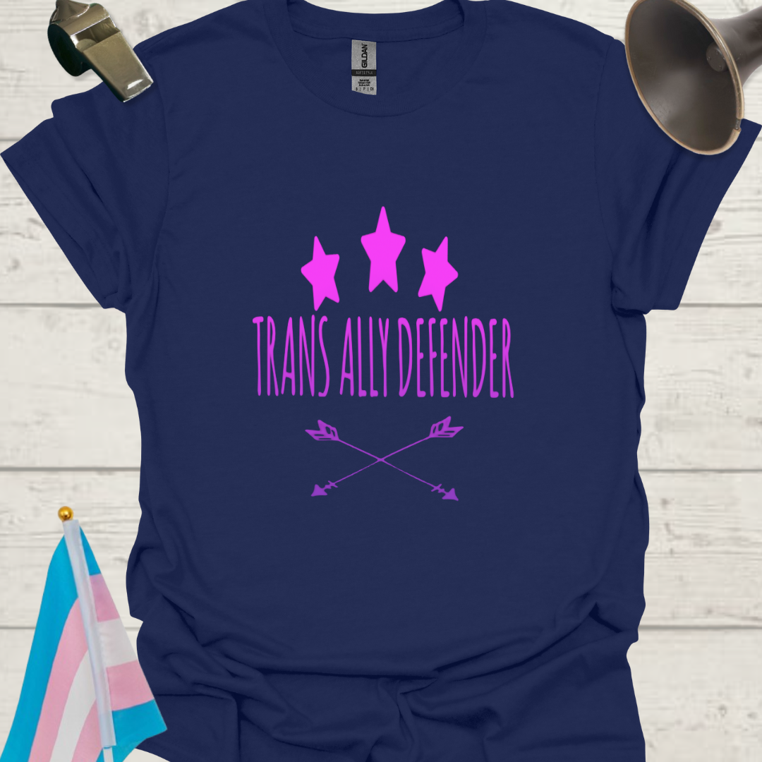 This Trans Ally Defender T-Shirt is a must-have for anyone looking to show their support for the LGBT community. Made from 100% ring-spun cotton, this Unisex lightweight and durable shirt is perfect for printing, ensuring that the vibrant design pops. The classic fit and crew neckline make it versatile for any occasion, and the tear-away label adds to the wearing comfort. This unisex T-shirt is ideal for adults who want to make a statement and stand up for inclusivity and diversity. Perfect for Pride Month, LGBT events, protests, or everyday wear.