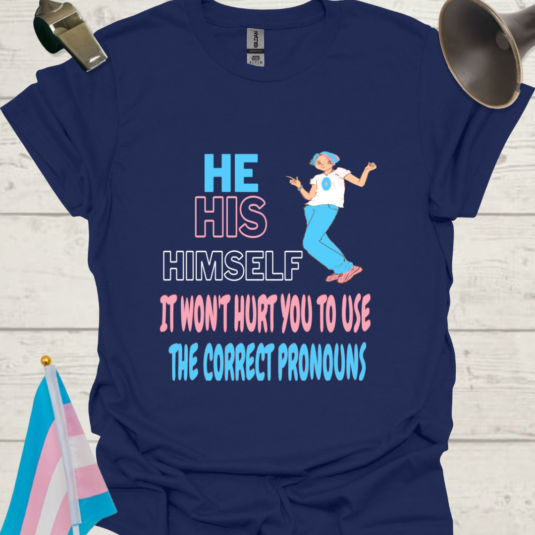Unisex LGBT He His Himself, It Won't Hurt You to Use the Correct Pronouns, Anime Boy, Transgender flag colors T-Shirt