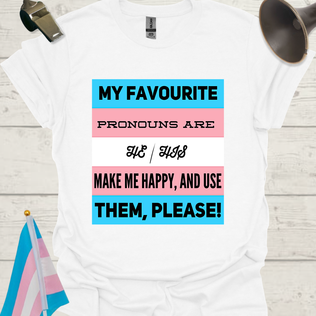 Unisex LGBT My favourite pronouns are He/ His. Make me happy and use them, please, Transgender flag T-Shirt
