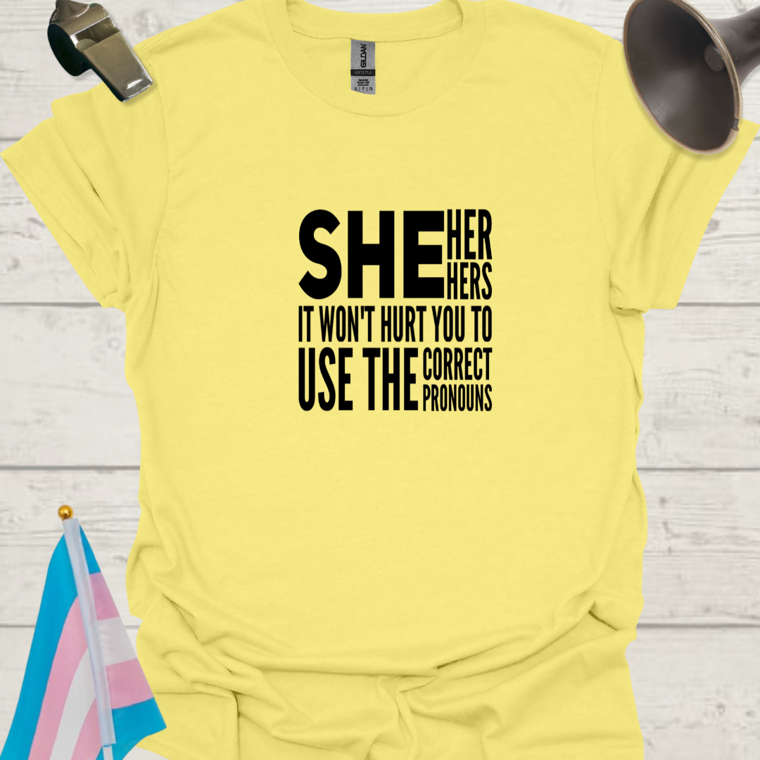 Unisex LGBT She Her Hers It Won't Hurt You to Use the Correct Pronouns T-Shirt