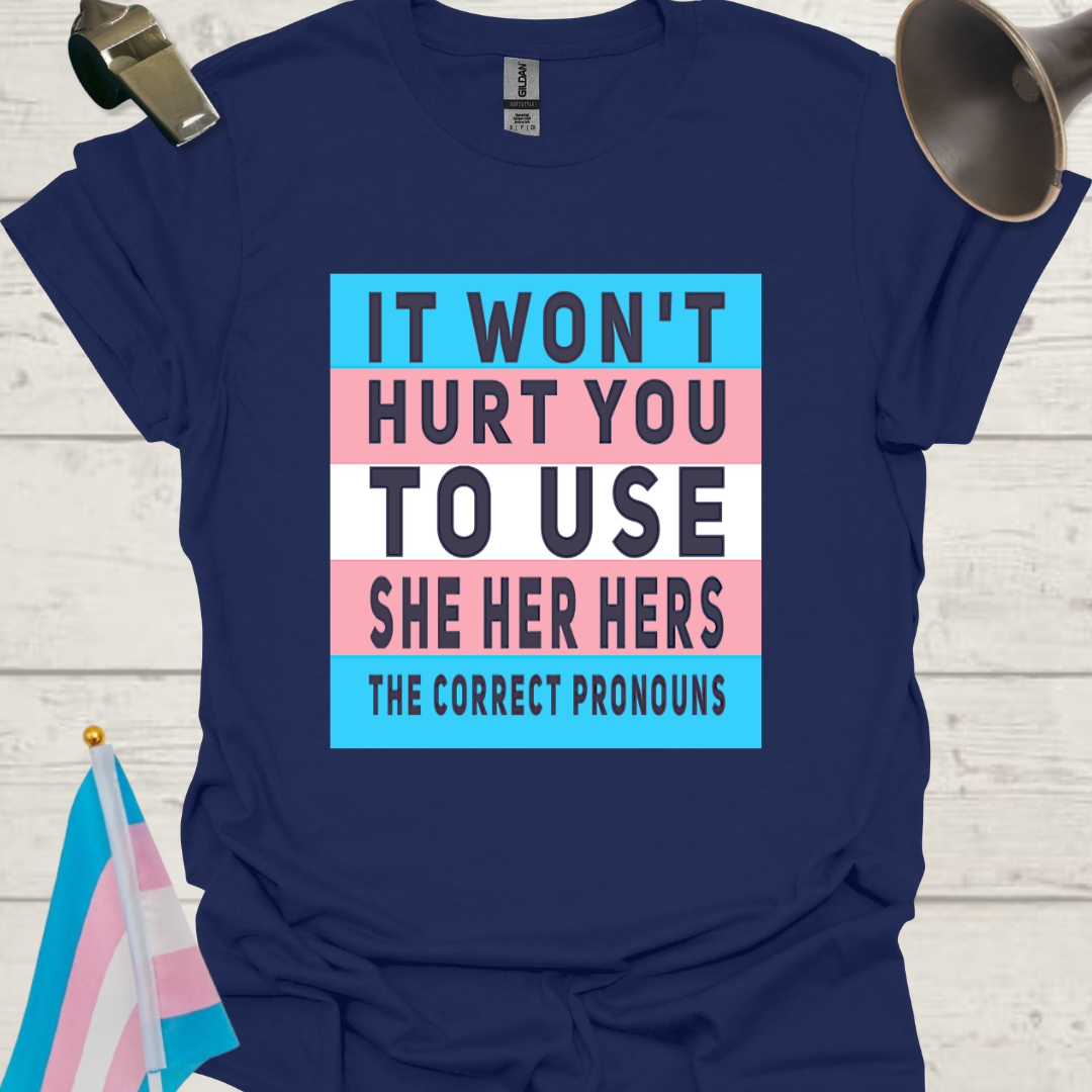 Unisex LGBT She Her Hers, It Won't Hurt You to Use the Correct Pronouns, Transgender flag T-Shirt